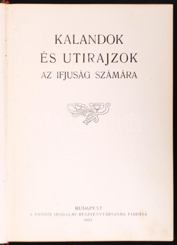 Description: Kalandok és utirajzok az ifjuság számára. (Az Otthon Könyvtár. Szerk. Zöldi Márton - Sebestyén Károly) Bp., 1907, Phönix Irodalmi Rt. Kiadói, szecessziós, aranyozott egészvászon kötésben, jó állapotú