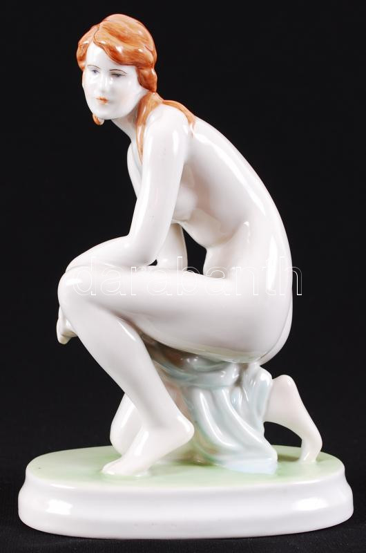 Zsolnay női akt, kézzel festett, jelzett/ Zsolnay chinaware figure 22 ...