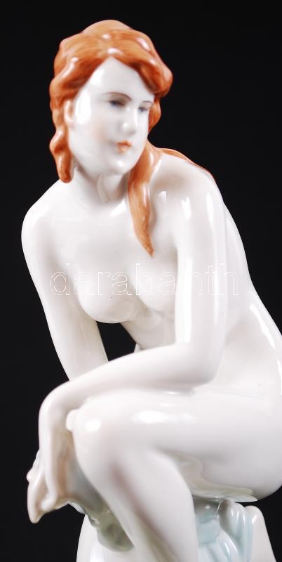 Zsolnay női akt, kézzel festett, jelzett/ Zsolnay chinaware figure 22 cm
