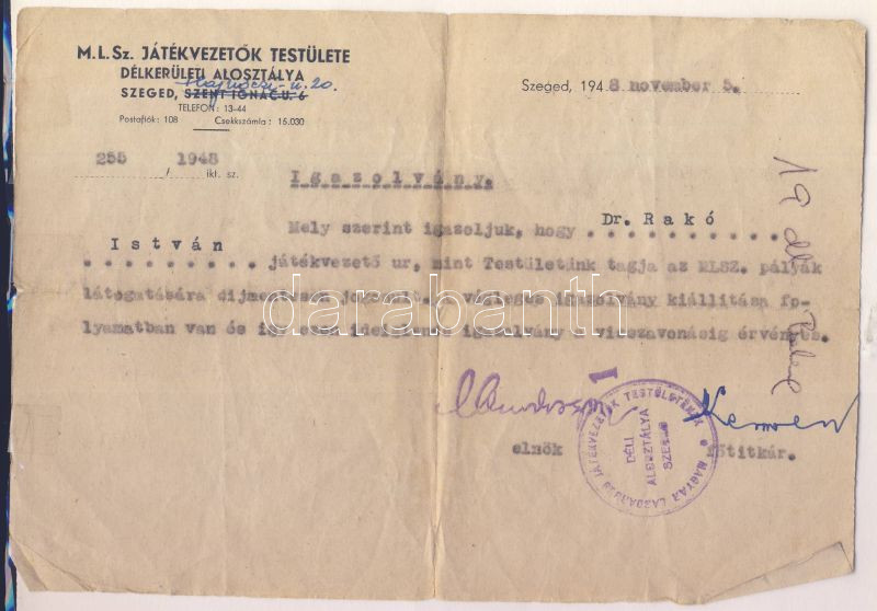 https://www.darabanth.com/en/193-Online-auction/193.0/Other-collectibles/Documents~200014/1948-MLSZ-palyalatogatasi-igazolvany-jatekvezeto-reszere~II345405