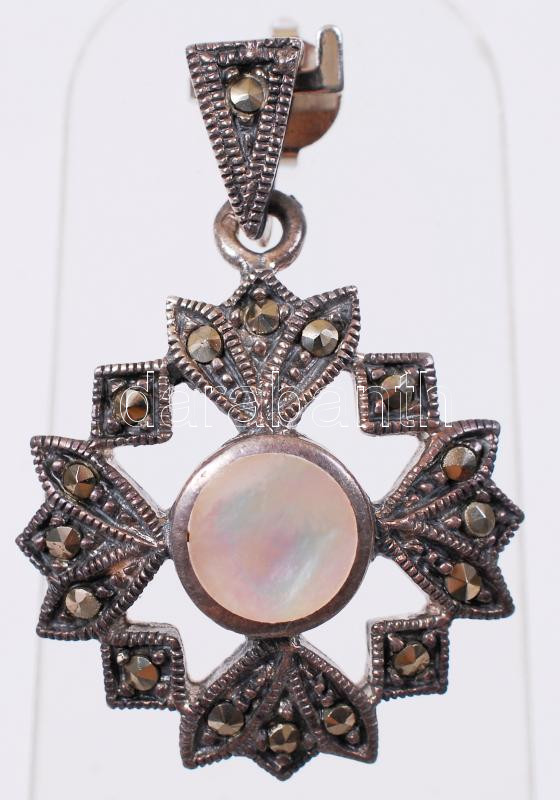 Női ezüst függő (Ag.) markazittal és gyöngyház berakással, d:2 cm , bruttó: 6,6 g