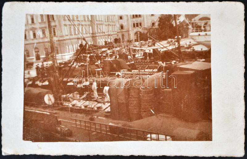 cca 1915 Puntisella (Pula), a k.u.k. kikötőparancsnokság épülete, hadihajók, matrózok, fotólap /
