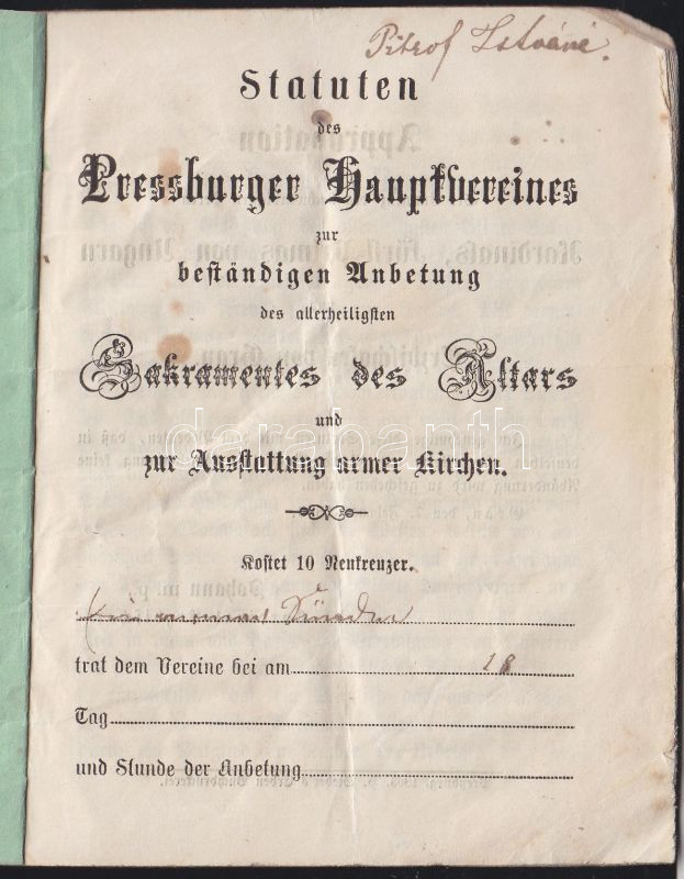 1860 A Pozsonyi szegény templomokat oltári és egyéb kellékek felruházá... https://www.darabanth.com/en/193-Online-auction/193.0/Other-collectibles/New-Years-Extra-Sale~200041/1860-A-Pozsonyi-szegeny-templomokat-oltari-es-egyeb-kellekek-felruhazasara-szervezett-egyesC3~II408874