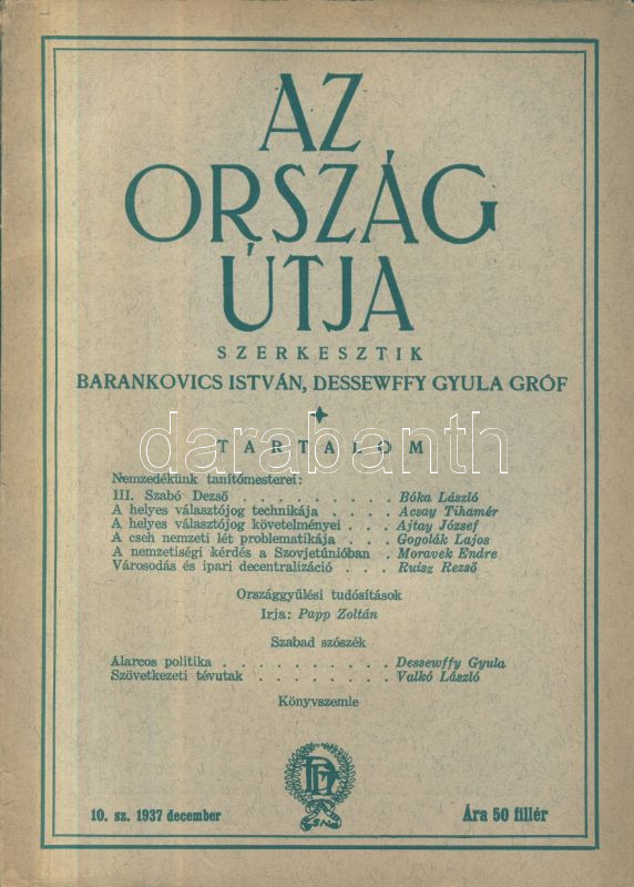 https://www.darabanth.com/en/193-Online-auction/193.0/Other-collectibles/New-Years-Extra-Sale~200041/1937-Barankovics-Desewffy-Az-orszag-utja-c-lap-80p~II401977