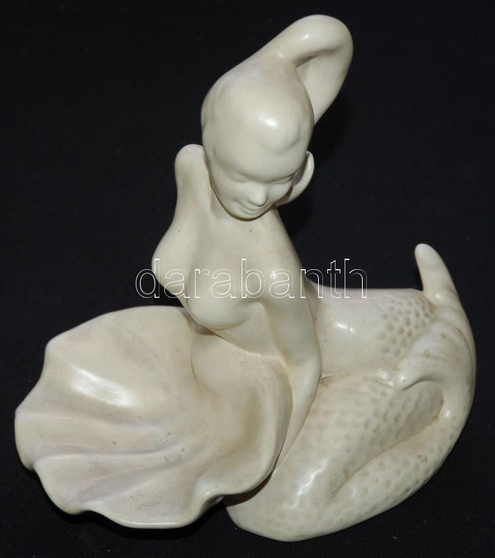 1980 G Watson jelzéssel: Kagylót tartó sellő, hibátlan, magasság: 22 cm, szélesség: 18 cm