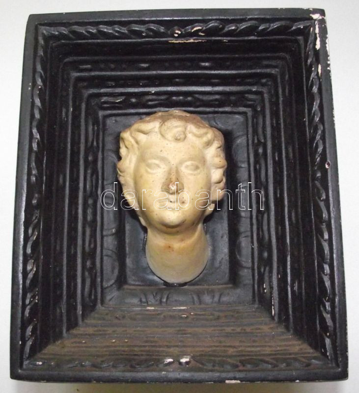 Hermészt ábrázoló kerámia fali dísz keretben / Hermes ceramics 11x13cm