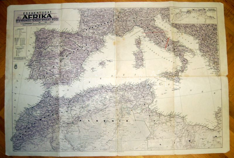cca 1938 M. kir. Honvéd Térképészeti Intézet: Afrika és a földközi ten...