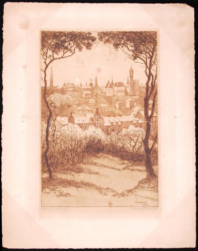 Conrad Gyula (1877-1959): Budavár tornyai. Rézkarc, papír, jelzett, 22...