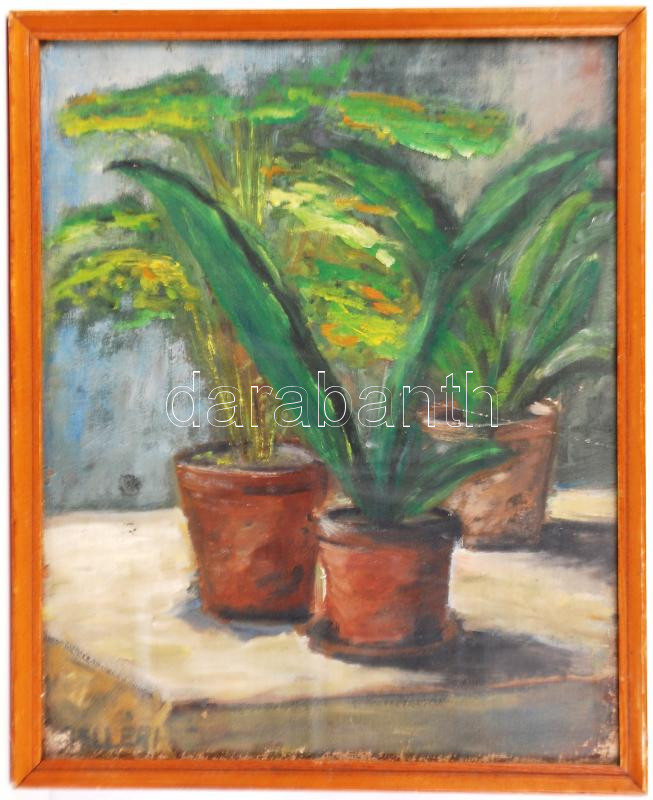 Gelléri jelzéssel: Szobanövények. Olaj, karton, üvegezett keretben, 52×42 cm