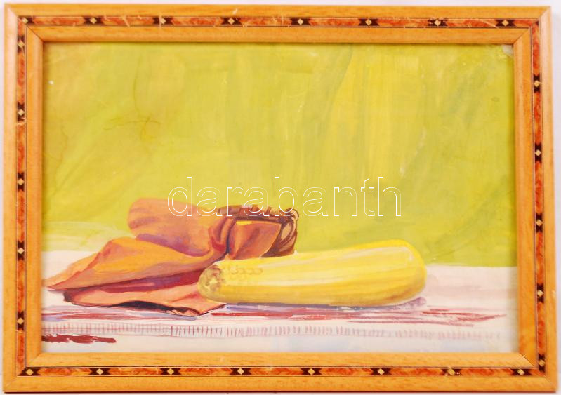 Jelzés nélkül: Kukoricás csendélet. Akvarell, papír, üvegezett keretbe...