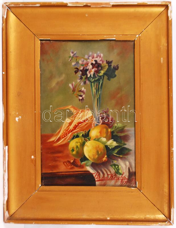 Olvashatatlan jelzéssel: Citromos csendélet. Olaj, vászon, apró lyukka...