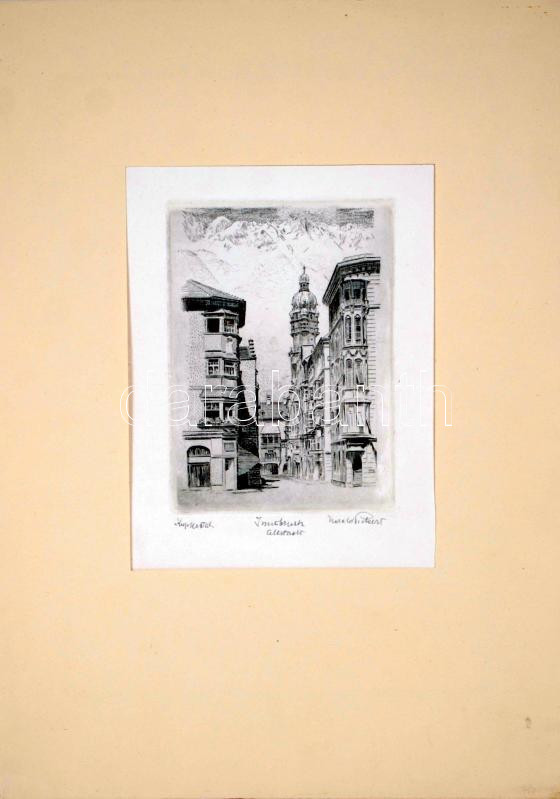 Olvashatatlan jelzéssel: Innsbruck altstadt. Rézkarc, merített papír, ...
