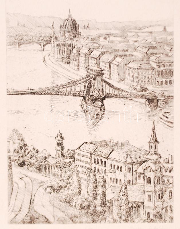 Pacsika Rudolf (1961-): Panoráma. Rézkarc, papír, jelzett, keretben, 51×37 cm