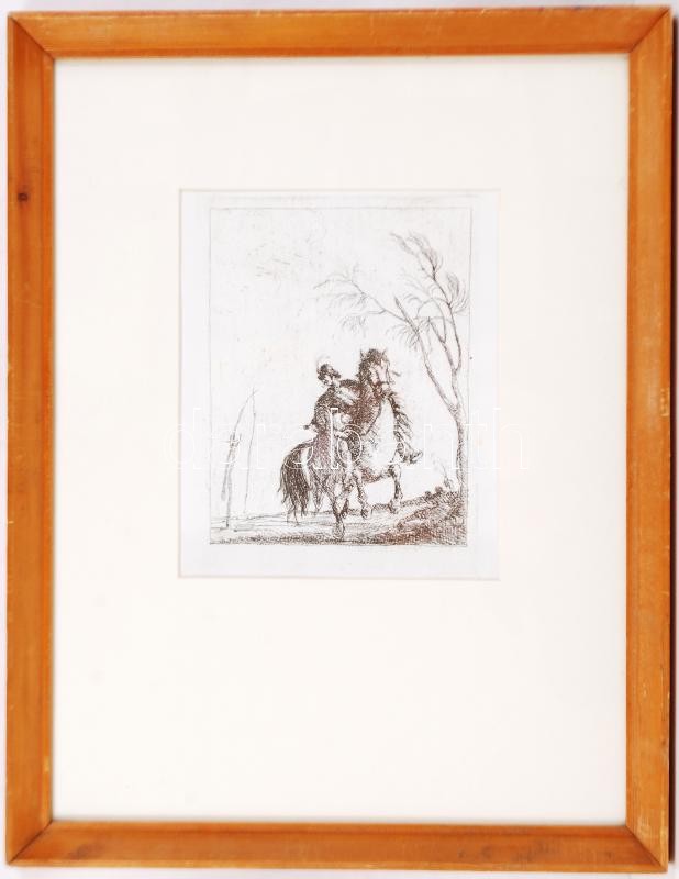 Rudnay Gyula (1878-1957): Lovas. Rézkarc, papír jelzés nélkül, üvegezett keretben, 18×13 cm