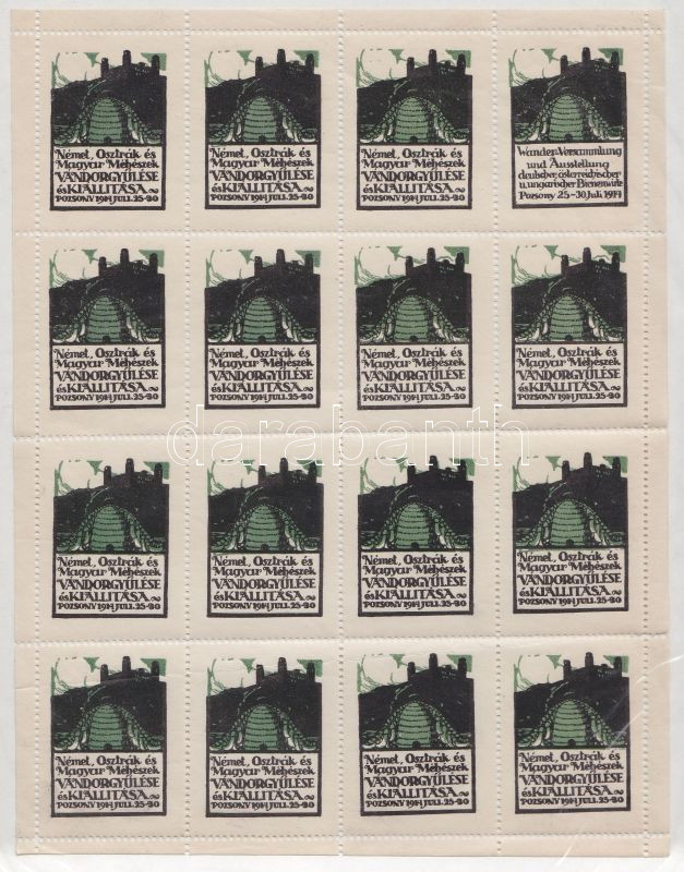 1914 Pozsonyi méhészeti vándorgyűlés és kiállítás 16 db-os levélzáró kisív benne 1 német és 15 magyar nyelvű levélzáró