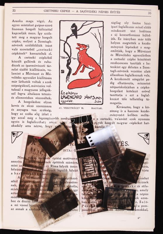 1907 Gróh István: A sajóvidéki népies építés in Magyar Iparművészet X. sz. 4 oldalas töredéke + 13 db dia épületekről