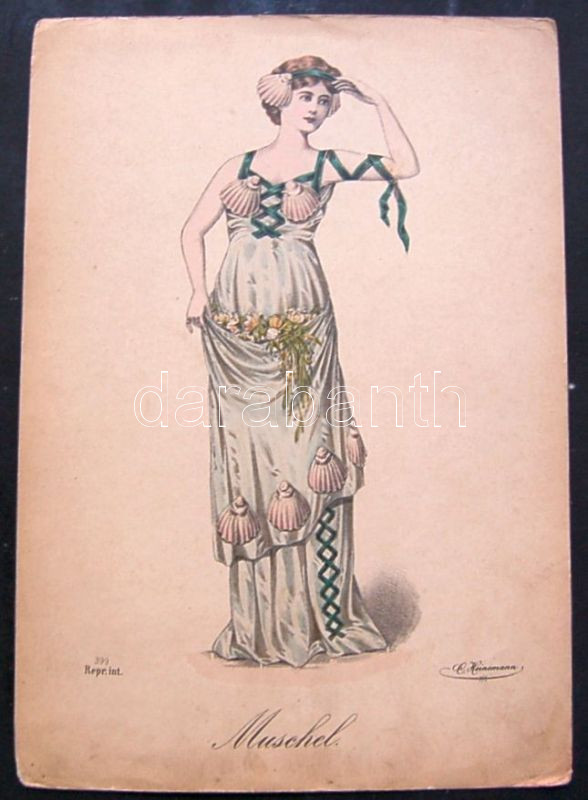 cca 1900 C. Heinemann jelzéssel: Muschel kőnyomat-papír / lithography ...