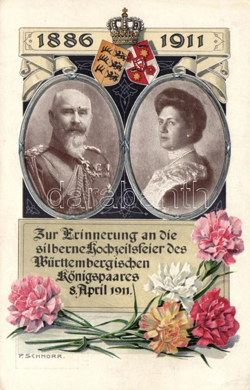 Württemberg Royal Wedding anniversary 1886-1911, Ga. litho s: P. Schnorr
