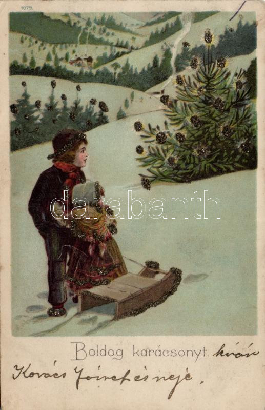 Christmas, decorated greeting card, litho