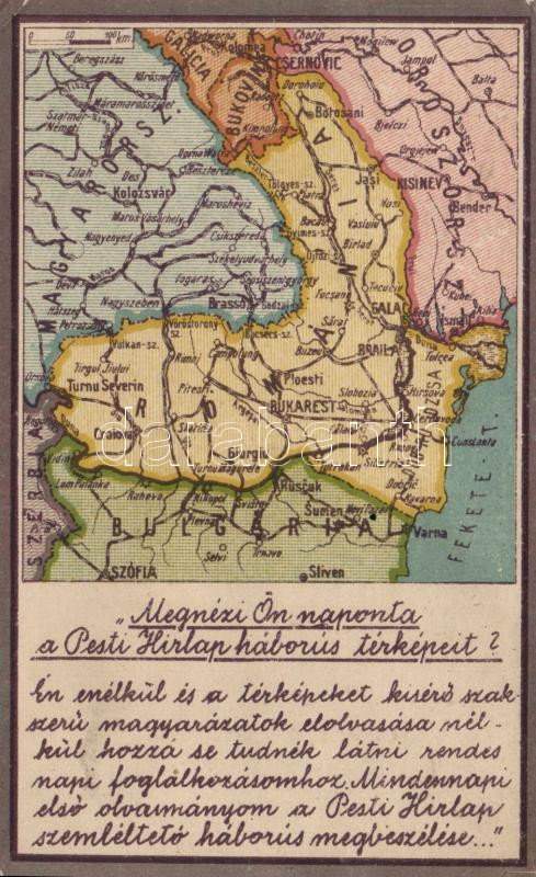 A Pesti Hírlap háborús térképei, Romániai háború / Advertisement, WWI military map, Romania (EK)