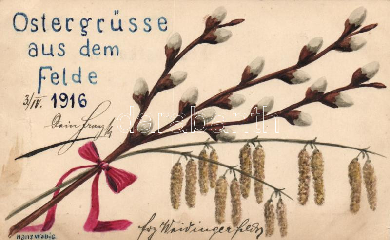 WWI handmade military postcard, Easter greeting, s: Hans Wallig (fa)