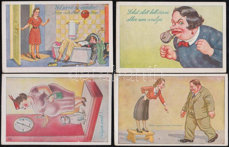 12 db régi, használatlan, humoros motívumlap, pinx. Kluka J., Kaszás Jámbor / 12 unused, humorous motive cards, pinx. Kluka J., Kaszás Jámbor