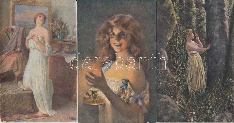 3 db régi, hölgy motívumlap / 3 lady motive cards, pinx. R. de Witt, Comerre, Josef Straka