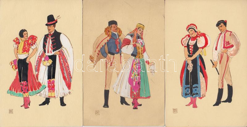 6 db régi, szlovák népviseleteket ábrázoló folklór lap (nem képeslap / non pc) / 6 pieces Slovakian folklore cards (non pc)