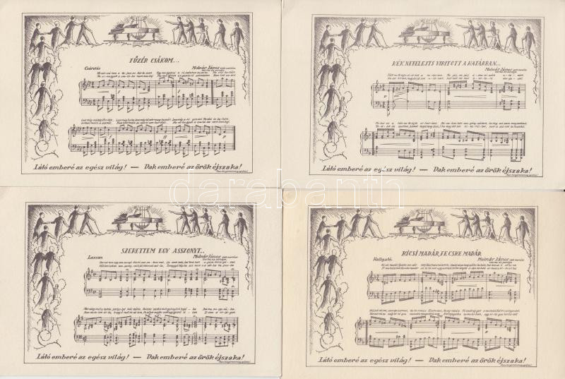 Description: 8 db régi, használatlan kottás képeslap, Molnár János vak zenész versei és zenéi / 8 pieces unused music postcards, the poems and musics of János Molnár, blind musician