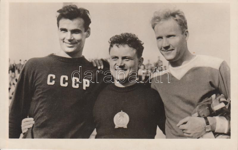 1951 Berlin XI. Akademische Sommerspiele; discus throwers - Klisz (Hungary) Partanen (Finland) Botenko (USSR)