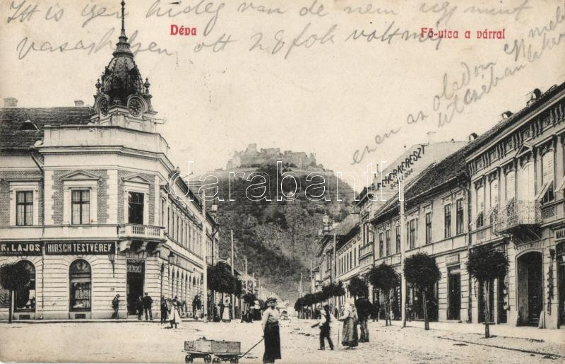 Déva, Főtér, Fehér Kereszt szálloda, Hirsch kereskedése / main square, hotel, shop