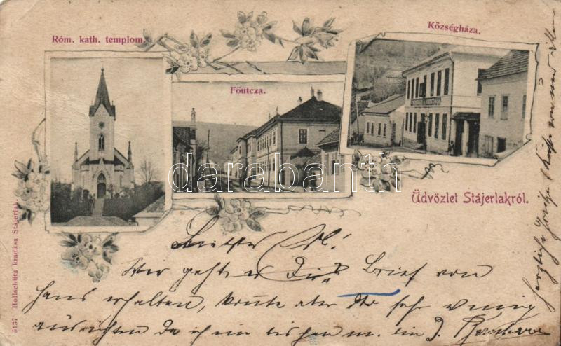 Stájerlak községháza, Fő utca, templom / town hall, main street, churc...