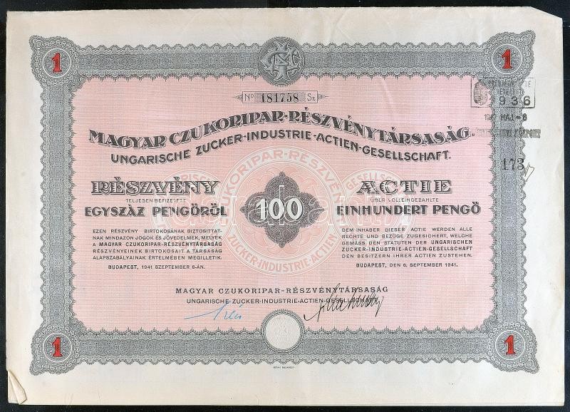 https://www.darabanth.com/en/194-Online-auction/194.0/Numismatics/Shares-and-Tickets~200004/Budapest-1923-1941-Magyar-Czukoripar-Reszvenytarsasag-5-reszvenye-egyenkent-600P-rol-plus-10~II742560