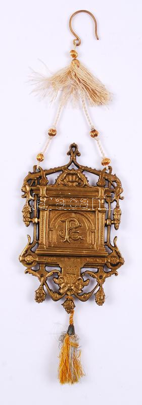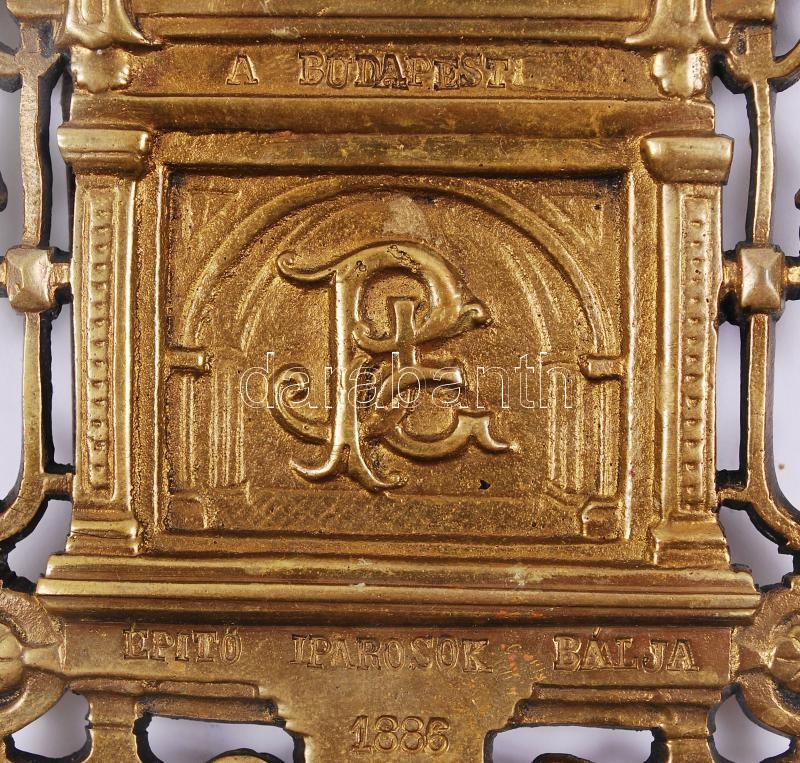 1886 A Budapesti Építő Iparosok Bálja réz táncrendtartó, bőr hátsó rés...