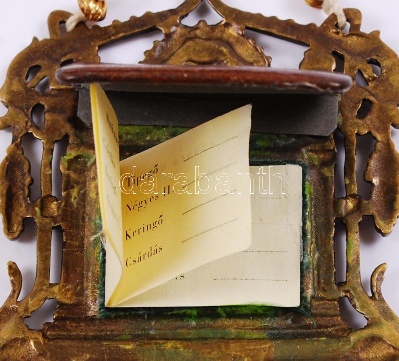 1886 A Budapesti Építő Iparosok Bálja réz táncrendtartó, bőr hátsó résszel, benne a táncrenddel