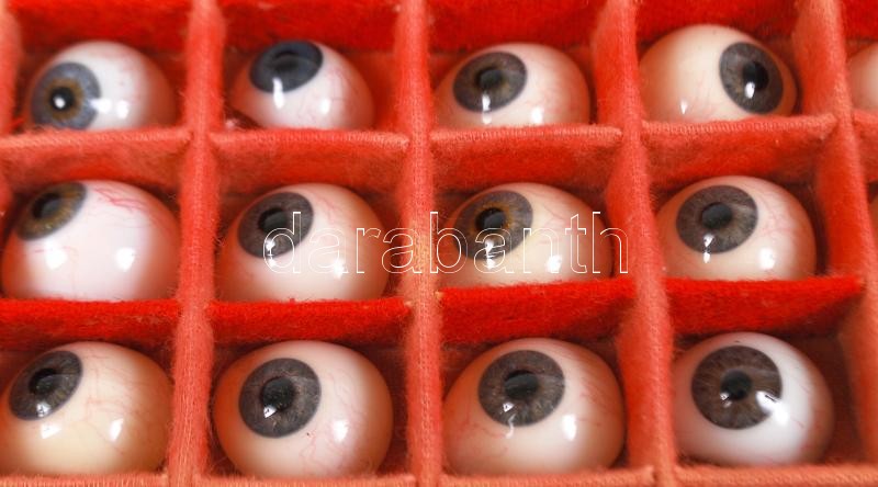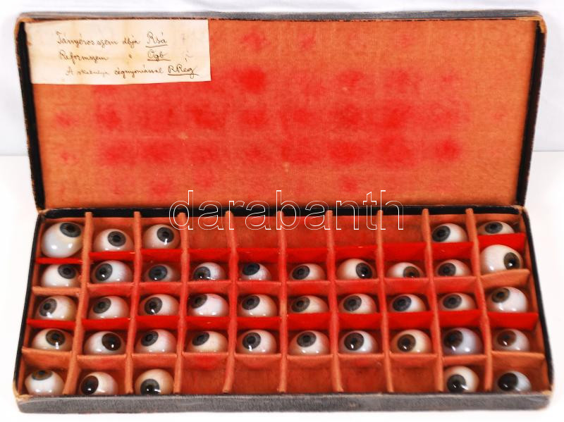 HAFA (Hatschek és Farkas), Budapest: Foto-, amatőrmozi-, optikai szaküzlet, fotó és mozi kidolgozó gyár: Festett porcelán szemek, mindegyik kézzel festett, hibátlanok, összesen: 40 db, doboz sérült