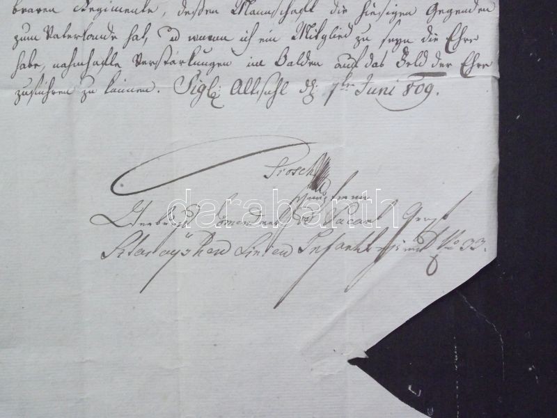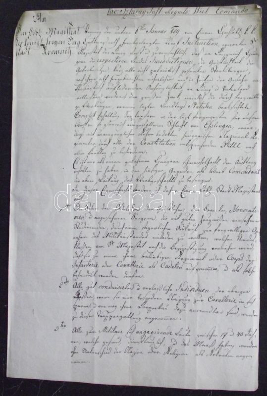 Description: 1809 A 33. "Sztáray" tüzérezred tábornoka által aláírt hivatalos levél 6 ex offo letter with the signatura of the 33th Austrian infantry regiment "Sztáray"