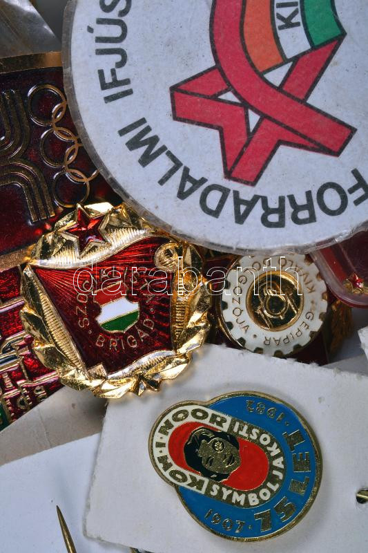 Kis doboznyi vegyes magyar és külföldi jelvény, közte főleg szocialist...