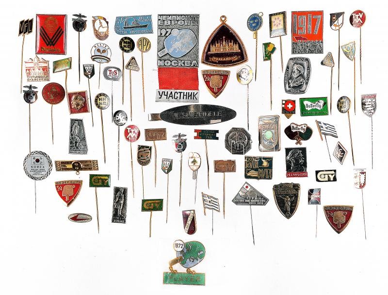 Kis zacskónyi vegyes magyar és külföldi kitűző, közte zománcozott és j...