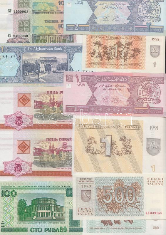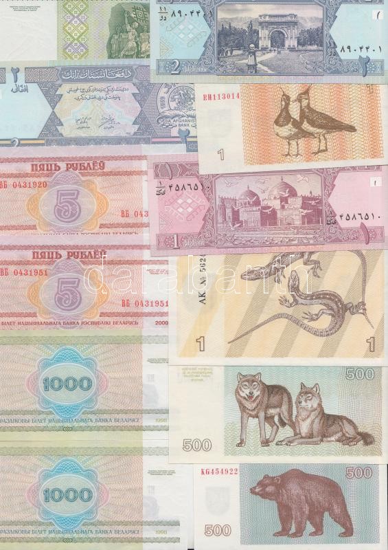 Afganisztán/Fehéroroszország/Lettország 12db modern bankjegy T:I