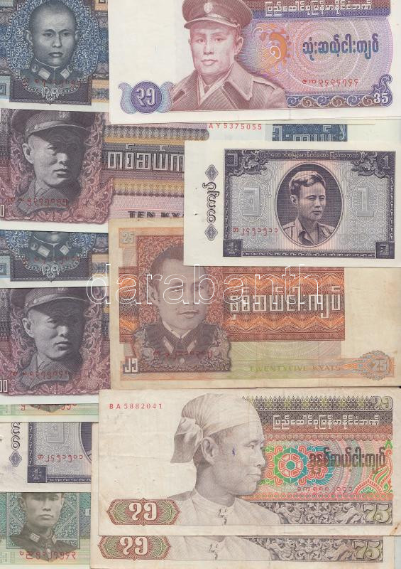 Burma 18db vegyes bankjegy T:I
