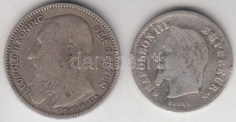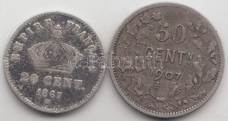 Description: Belgium 1907. 50c Ag "II. Lipót" + Franciaország 1867. 20c Ag "III. Napóleon" T:3