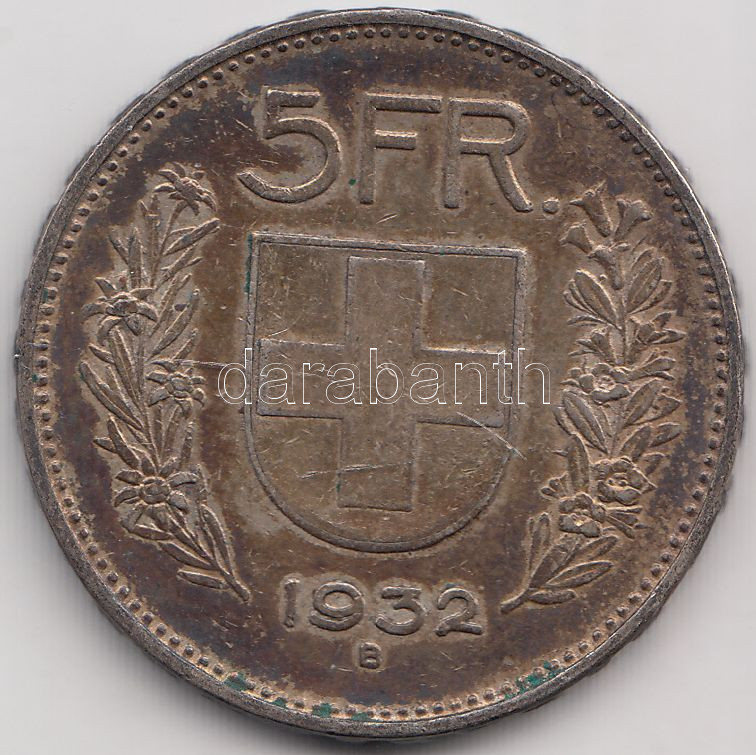 https://www.darabanth.com/en/195-Online-auction/195.0/Numismatics/Foreign-coins~400013/Svajc-1932B-5Fr-Ag-T2--3Cbr3ESwitzerland-1932B-5-Francs-Ag-CVF~II745187