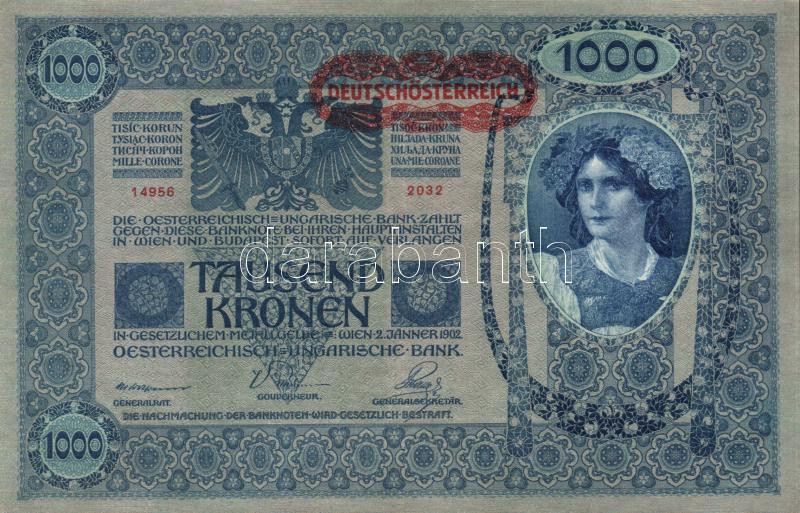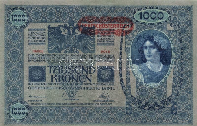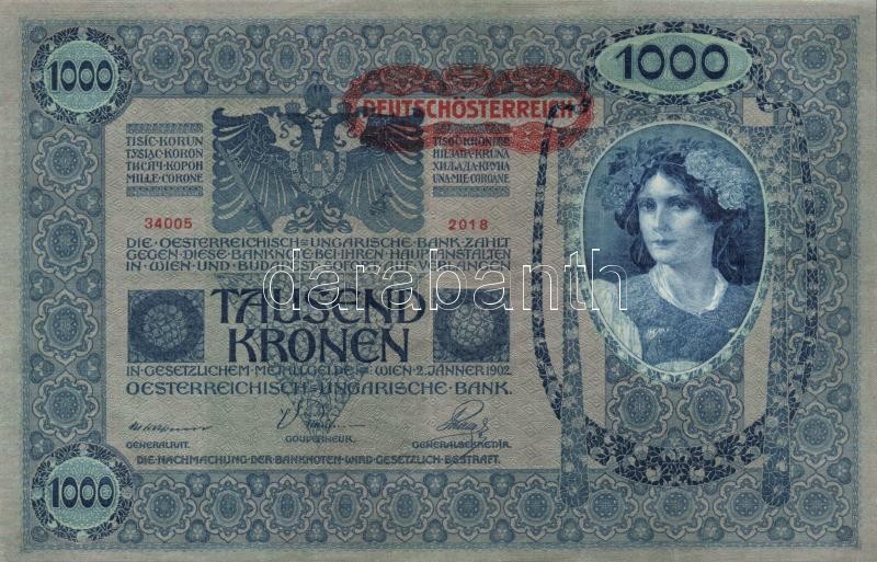 https://www.darabanth.com/en/195-Online-auction/195.0/Numismatics/Hungarian-Banknotes~400009/1902-1000K-3x-piros-Deutschosterreich-belyegzovel-TII-~II745549