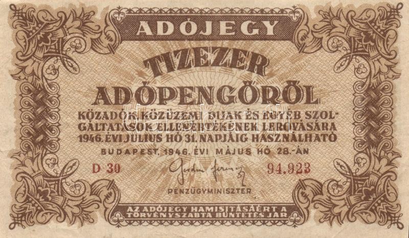 1946. 10.000AP - 1.000.000AP 11db adópengő változatokkal T:vegyes