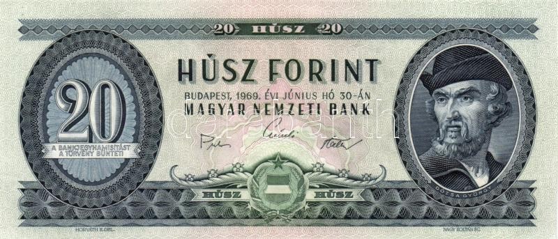 1969. 20Ft (2x) egymás utáni sorszámmal T:I + 1975. 10Ft (2x) egymás u...