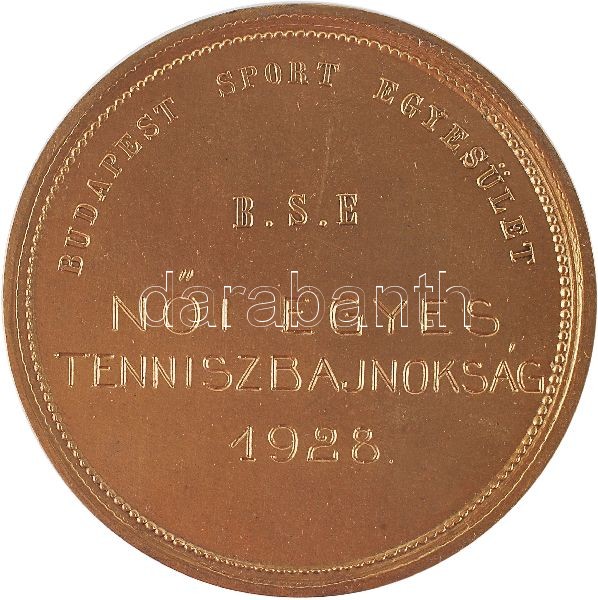 1928. "Budapest Sport Egyesület B.S.E. NŐI EGYES TENISZBAJNOKSÁG 1928.... https://www.darabanth.com/en/195-Online-auction/195.0/Numismatics/Hungarian-commemorative-medals~400010/1928-Budapest-Sport-Egyesulet-BSE-NOI-EGYES-TENISZBAJNOKSAG-1928-aranyozott-Br-emlekerem~II675849