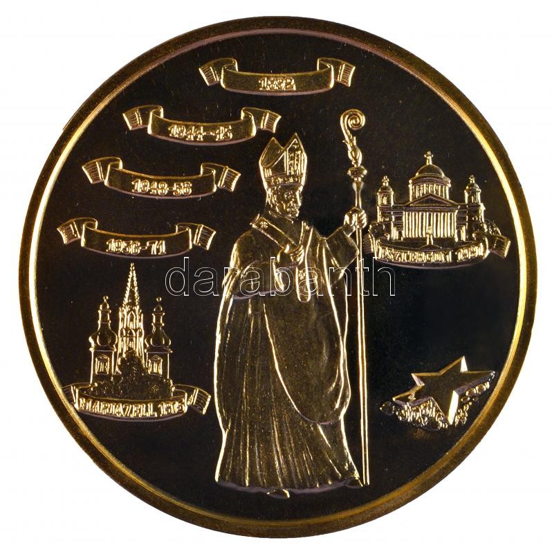 Bognár György (1944-) 1991. "Mindszenty József Bíboros Hercegprímás 1892-1975" aranyozott emlékérem a "Napjaink Magyar Történelme Érmekben" sorozatból adományozói dísztokban (65mm) T:PP
