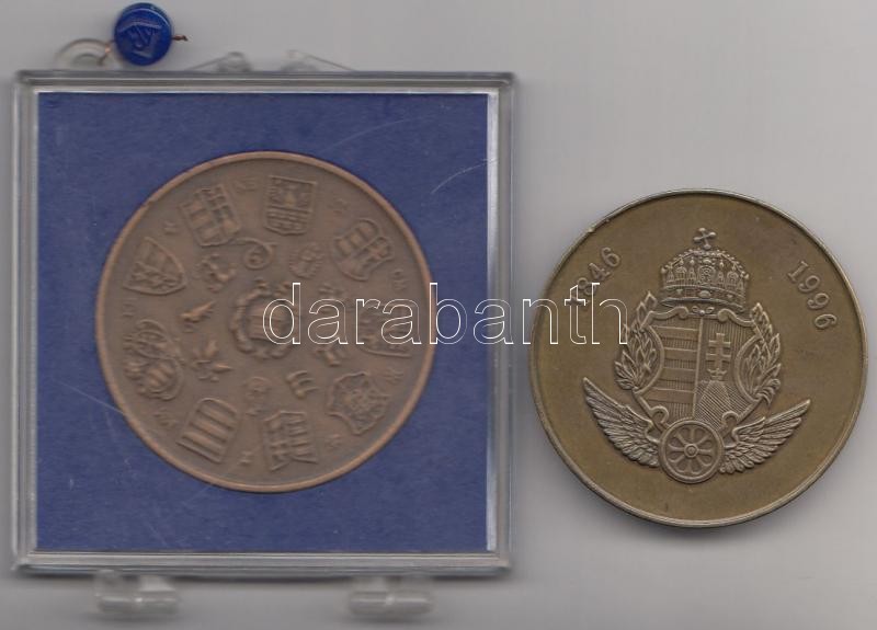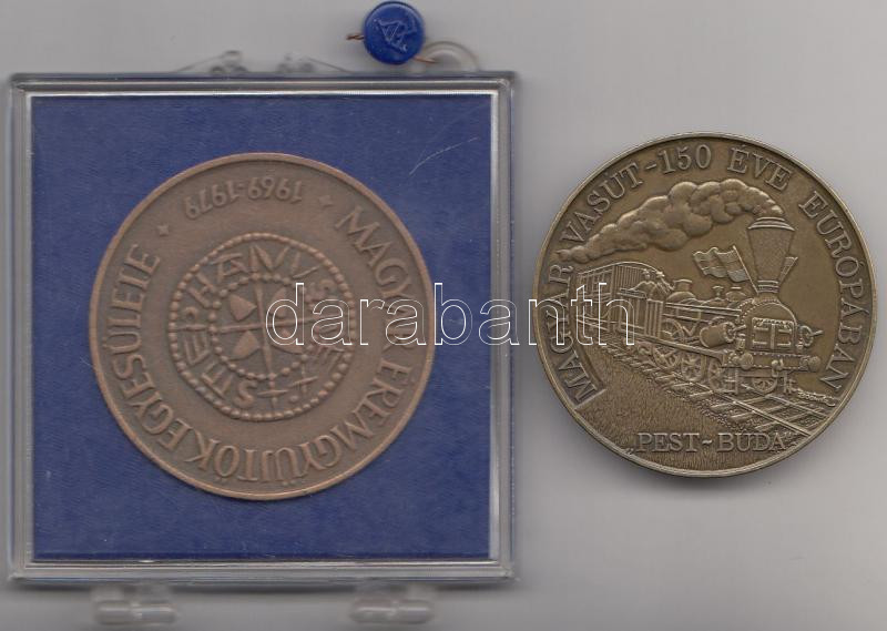Bognár György (1944-) 1996. "Magyar Vasút - 150 Éve Európában, PEST-BUDA" Br emlékérem (42,5mm) T:2 + Csúcs Viktória (1934-) 1979. "MÉE - Szent István dénár" Br emlékérem plombált ÁPV plasztiktokban (42,5mm) T:1