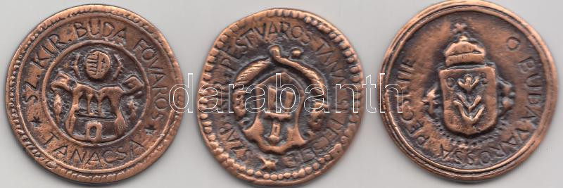 DN. 3db klf Buda és Pest városi pecsét emlékérme T:1